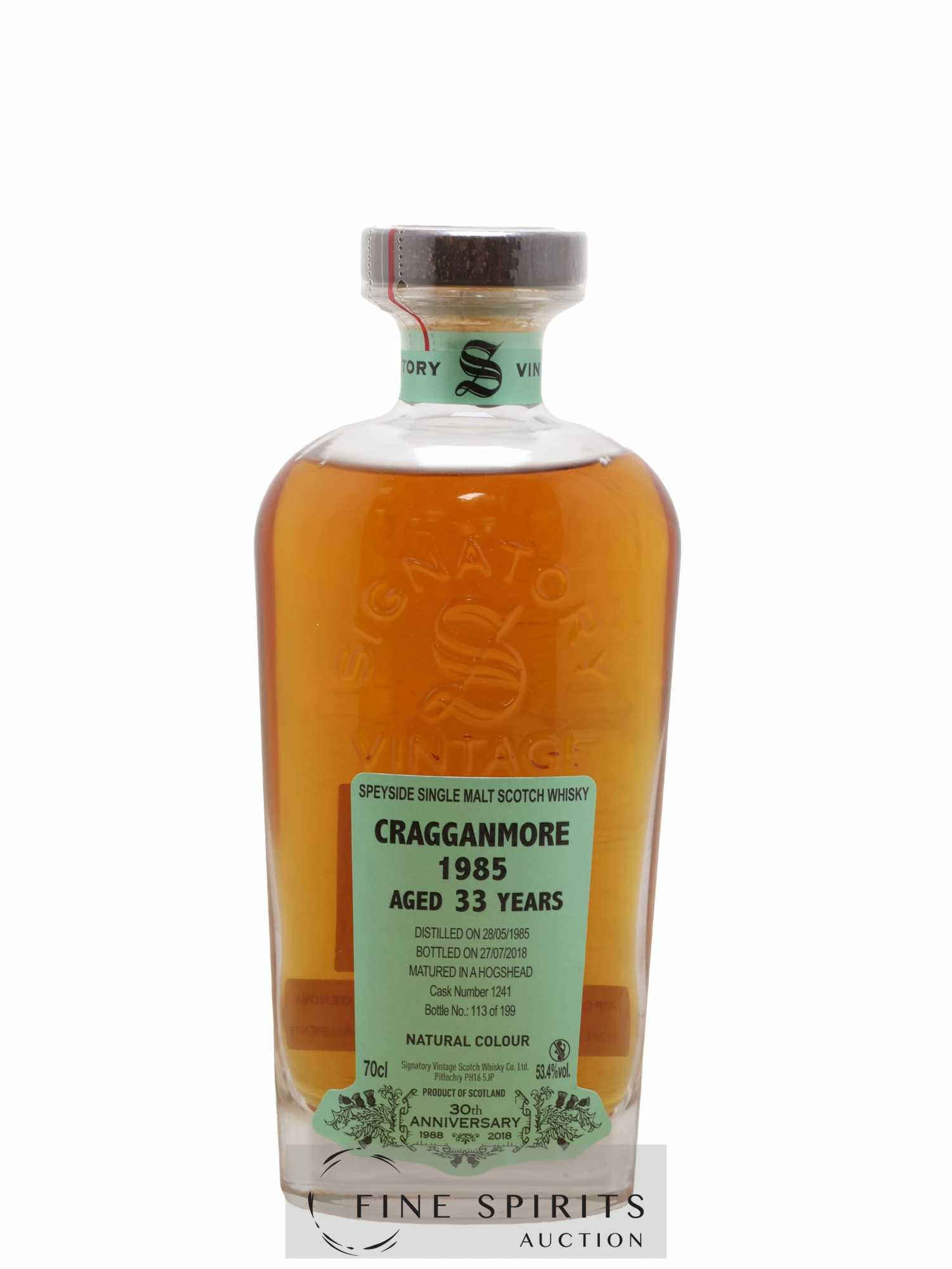 Vous avez ajouté lot deCragganmore 33 years 1985 Signatory Vintage Cask n°1241 - One of 199 - bottled 2018 30th Anniversary