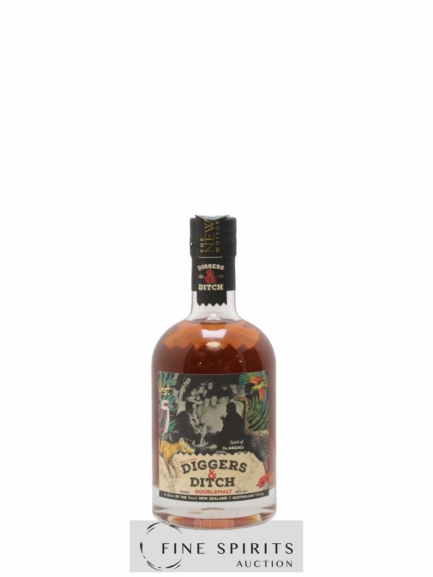 Diggers & Ditch est un hommage aux troupes de l'Anzacs, bataillon Australo - néo-zélandais qui a combattu dans de nombreux conflits mondiaux de la bataille des Dardanelles en 1915 jusqu'à nos jours. Symbole de symbiose entre les deux pays, le D&D est un assemblage du Dunedin de The New Zealand Whisky Collection ( Blend à forte proportion de malt vielli majoritairement en fût de vin Français) et d'un single malt de Tasmanie, île du sud de l'Australie qui est l'avant garde de la notoriété des whisky australien.